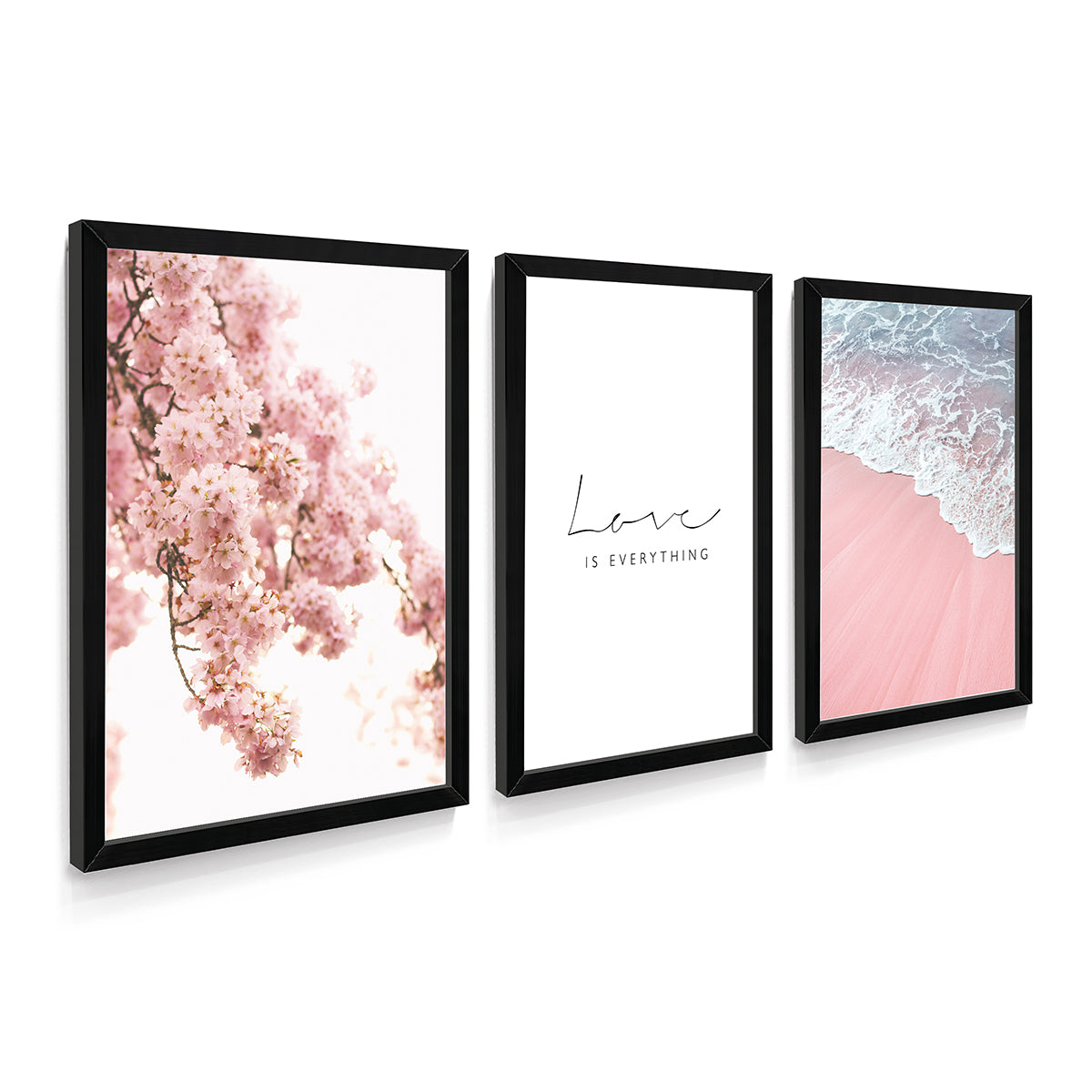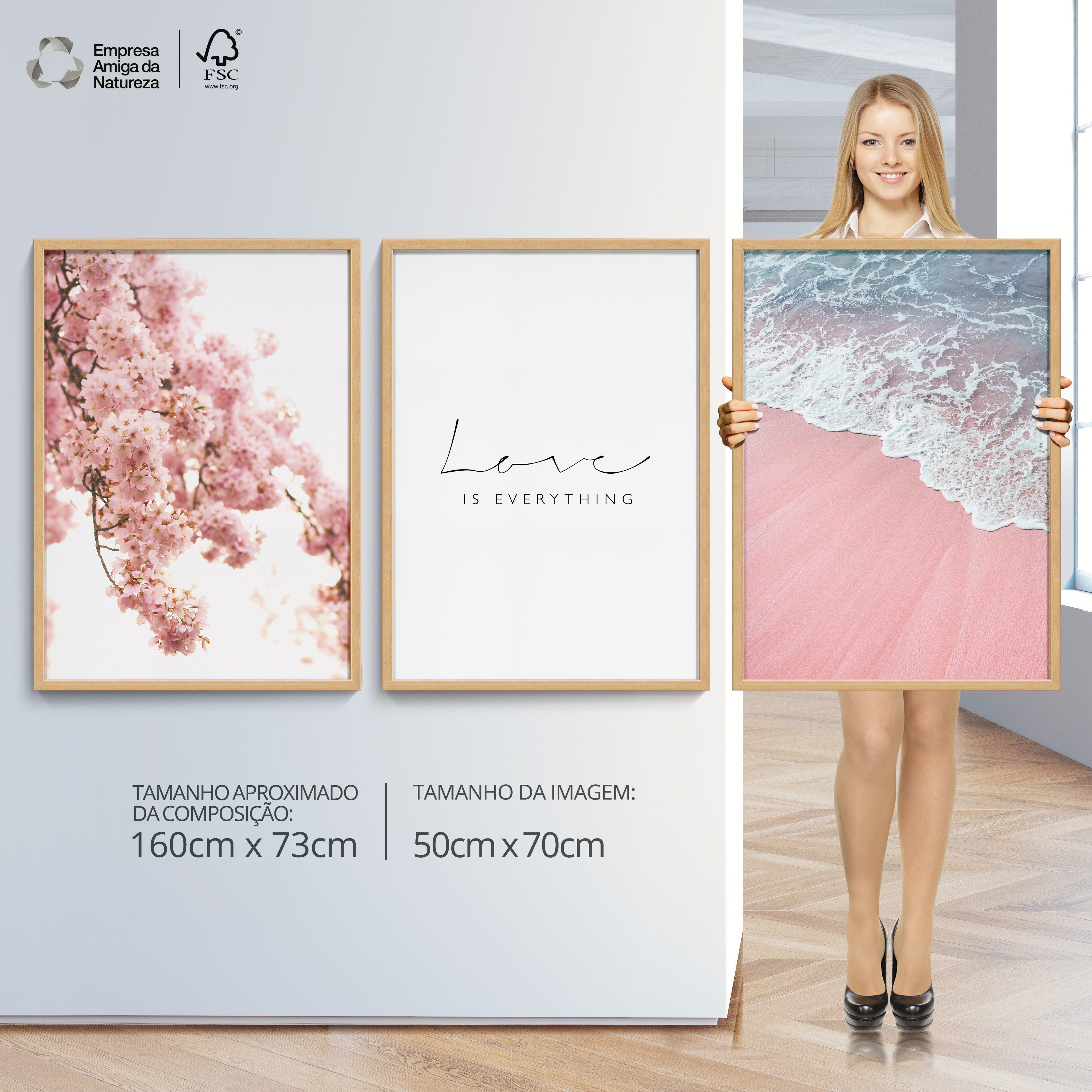 Composição de Quadros Praia & Flores Rosa - 60OFF